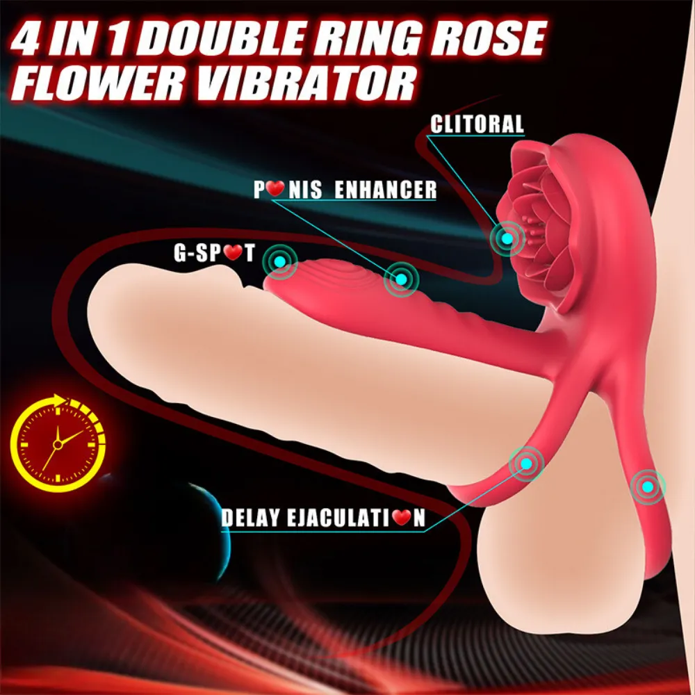 Ergonomik ve Şık Tasarım: Gül şeklindeki başlık, klitoris ve G noktanıza mükemmel bir şekilde uyum sağlar. Kompakt ve ergonomik tasarımı sayesinde vücuda rahatça oturur. Ayrıca, testis ve penis halkası da rahatça yerleşir ve konforlu bir kullanım sunar.