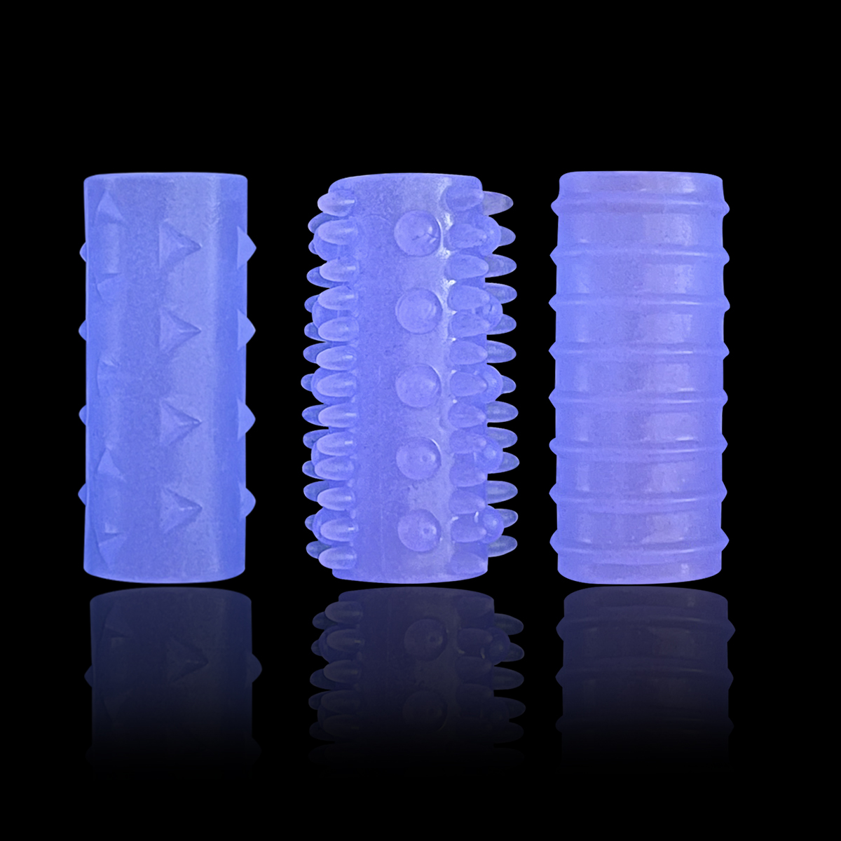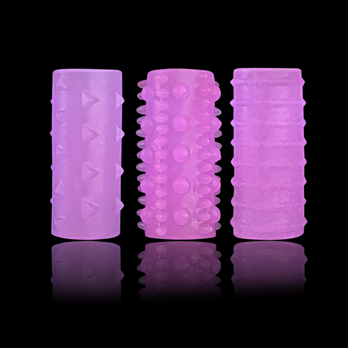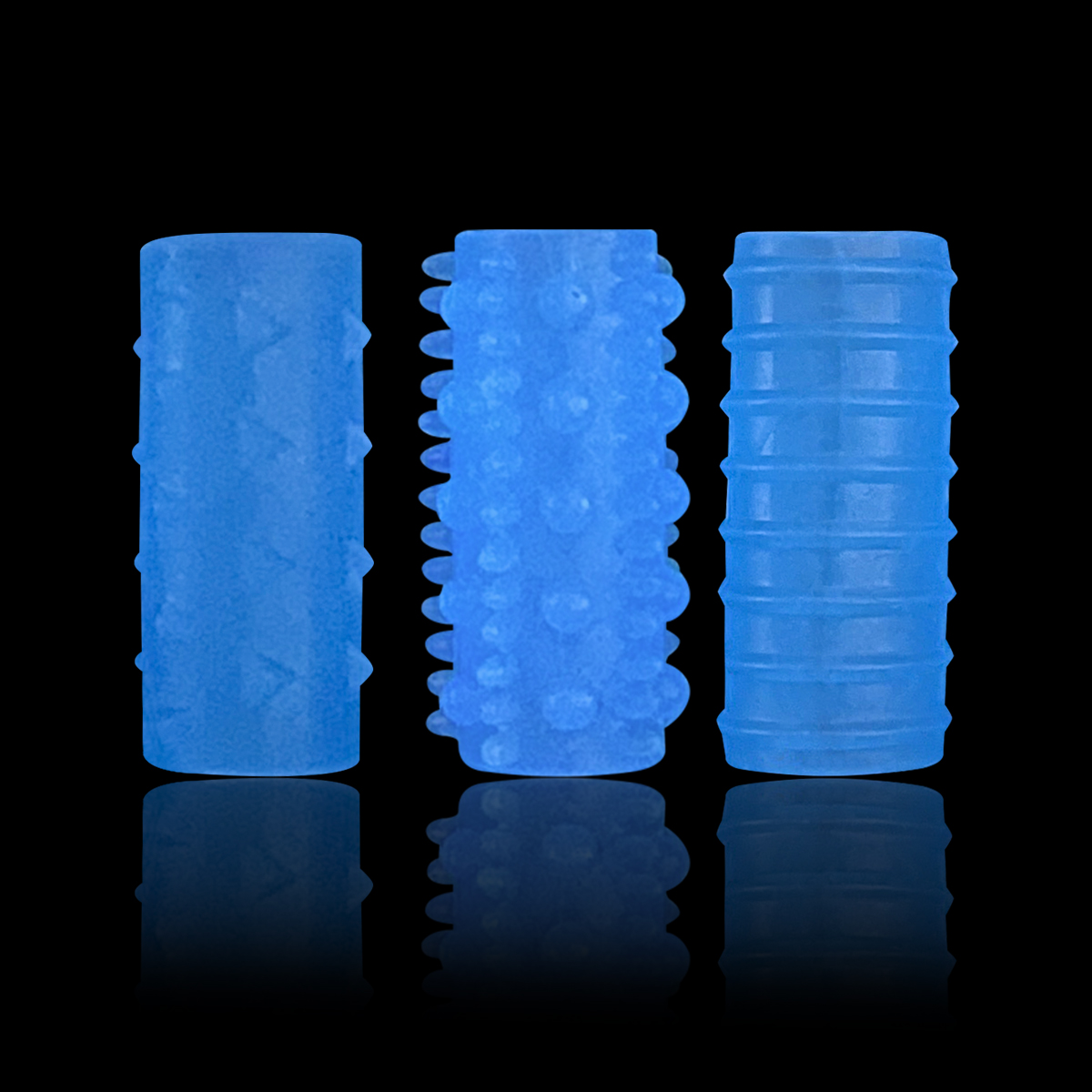 Convex Stimulus - Tırtıklı 3 Farklı Silikon Penis Kılıfı Set 4 CM: Bu set, farklı dokulara sahip üç adet esnek ama dayanıklı silikon kılıf içerir. Ürünler tıbbi sınıf silikondan üretilmiş olup, cinsel uyarımı artırmak amacıyla penis üzerine geçirilerek kullanılır.