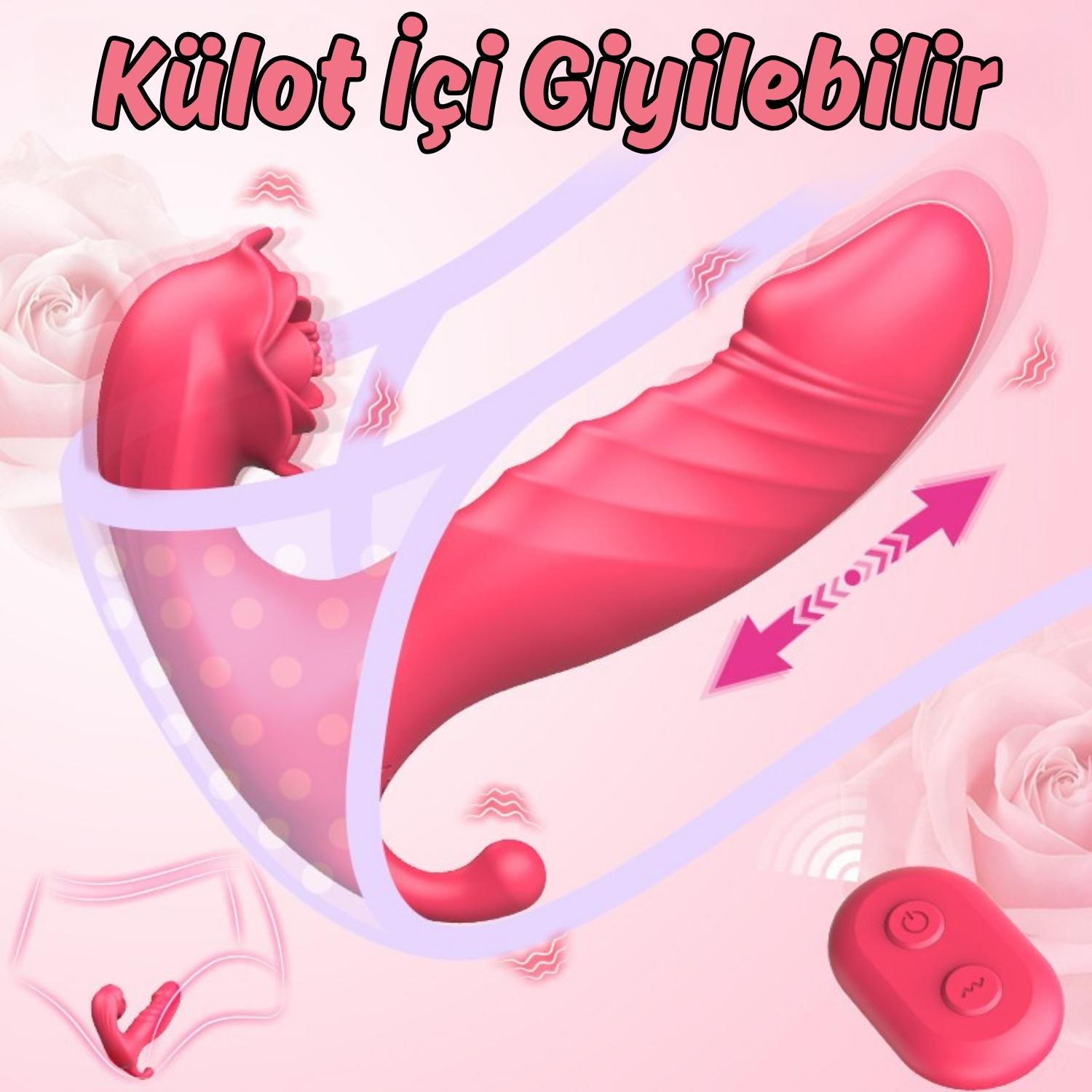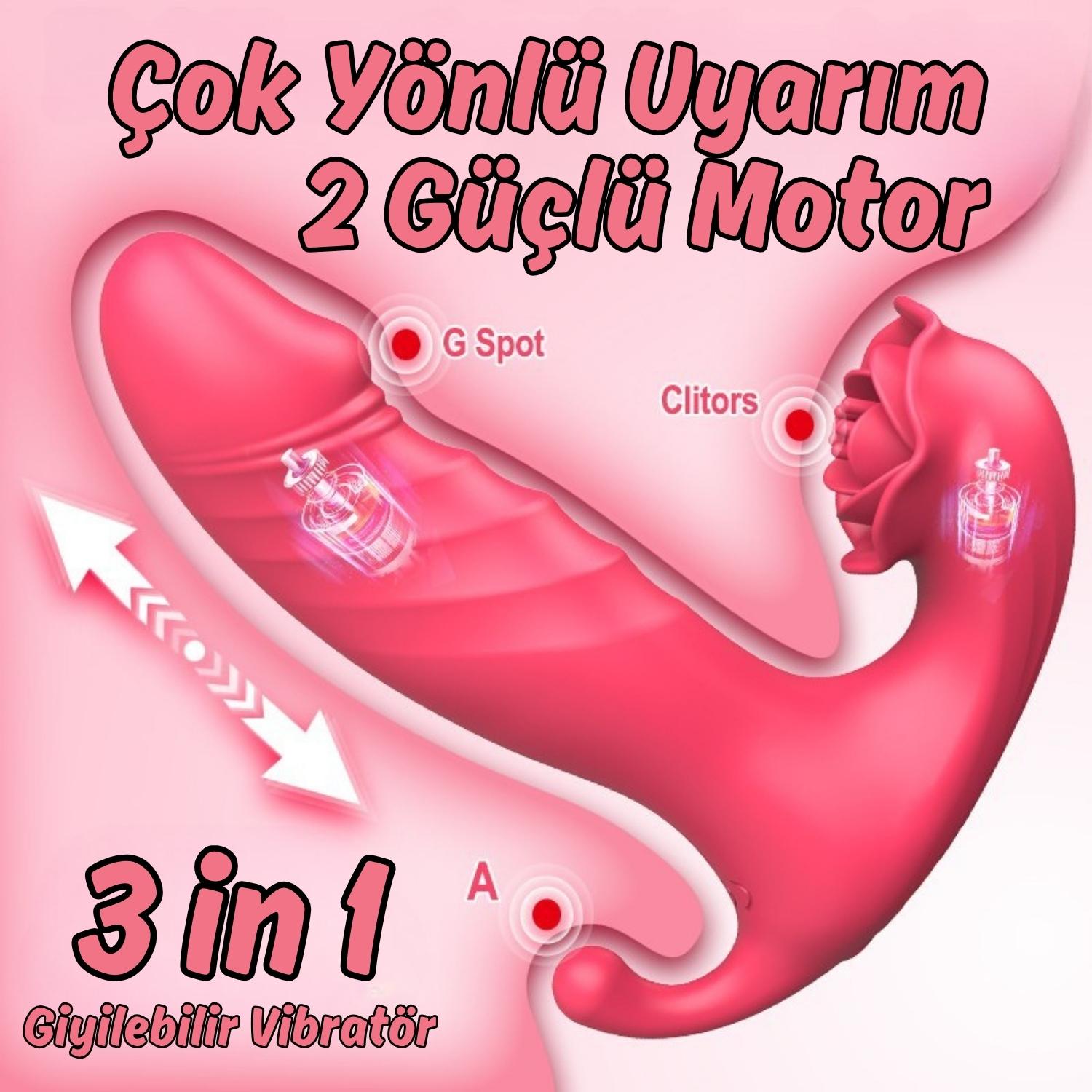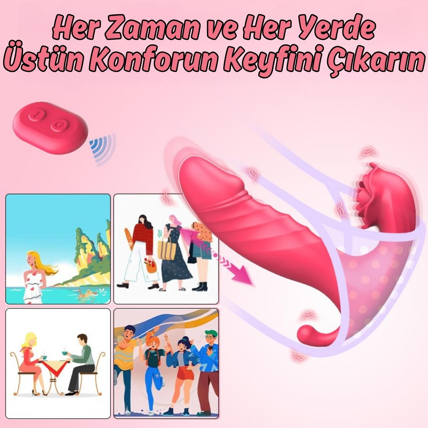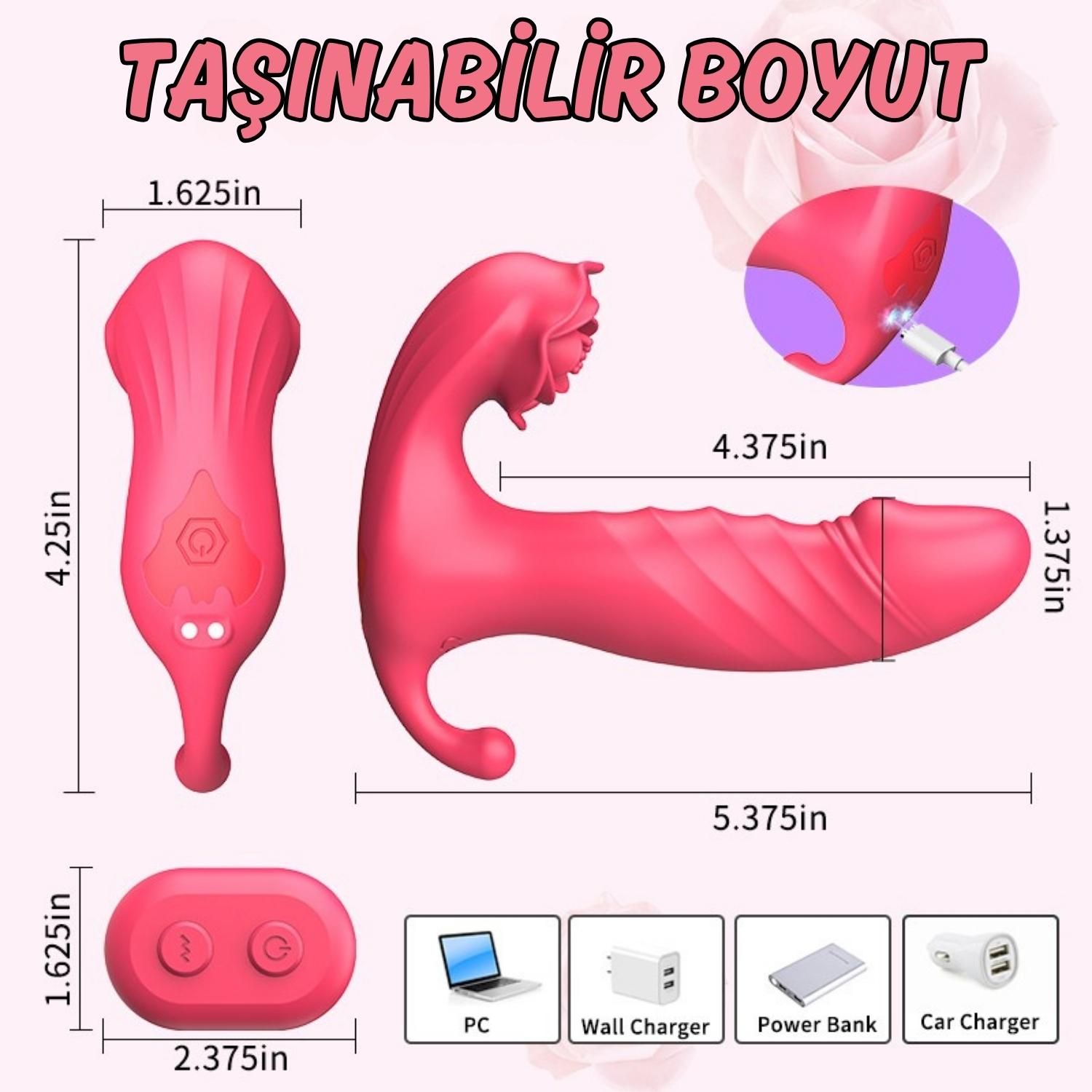 Bu vibratör, 3 farklı bölgeyi aynı anda uyararak çok boyutlu bir haz deneyimi sunar. Vajinal ve anal bölgelerde ileri geri hareket fonksiyonu, klitoral uyarıcı ile birleşerek çok yönlü ve derinlemesine bir tatmin yaratır. Her anı özel kılacak bir uyarım sunar.
