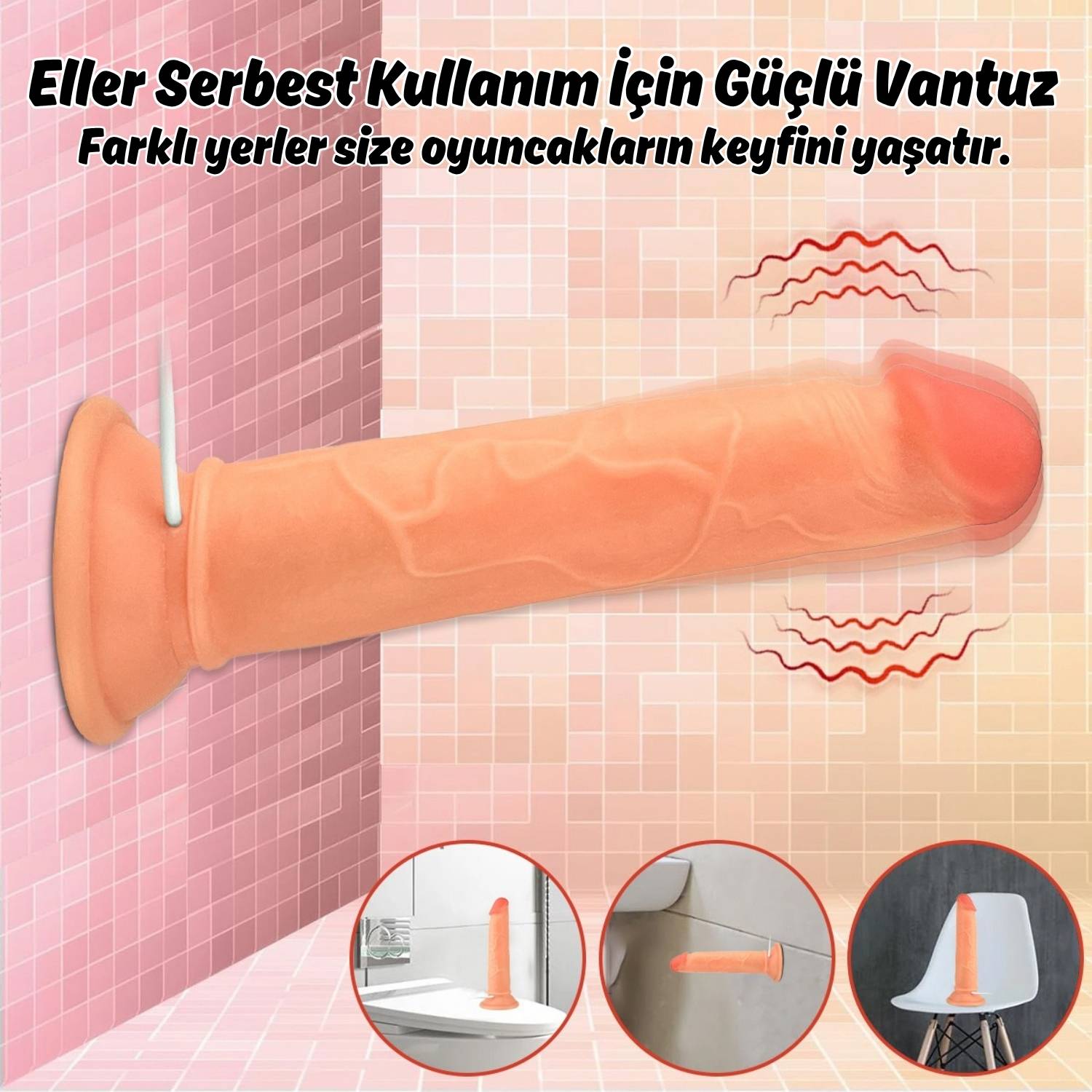 Thomas - Kumandalı Büyük Boy Güçlü Titreşimli Gerçekçi Yapay Penis Realistik Dokuda Dildo 28 CM