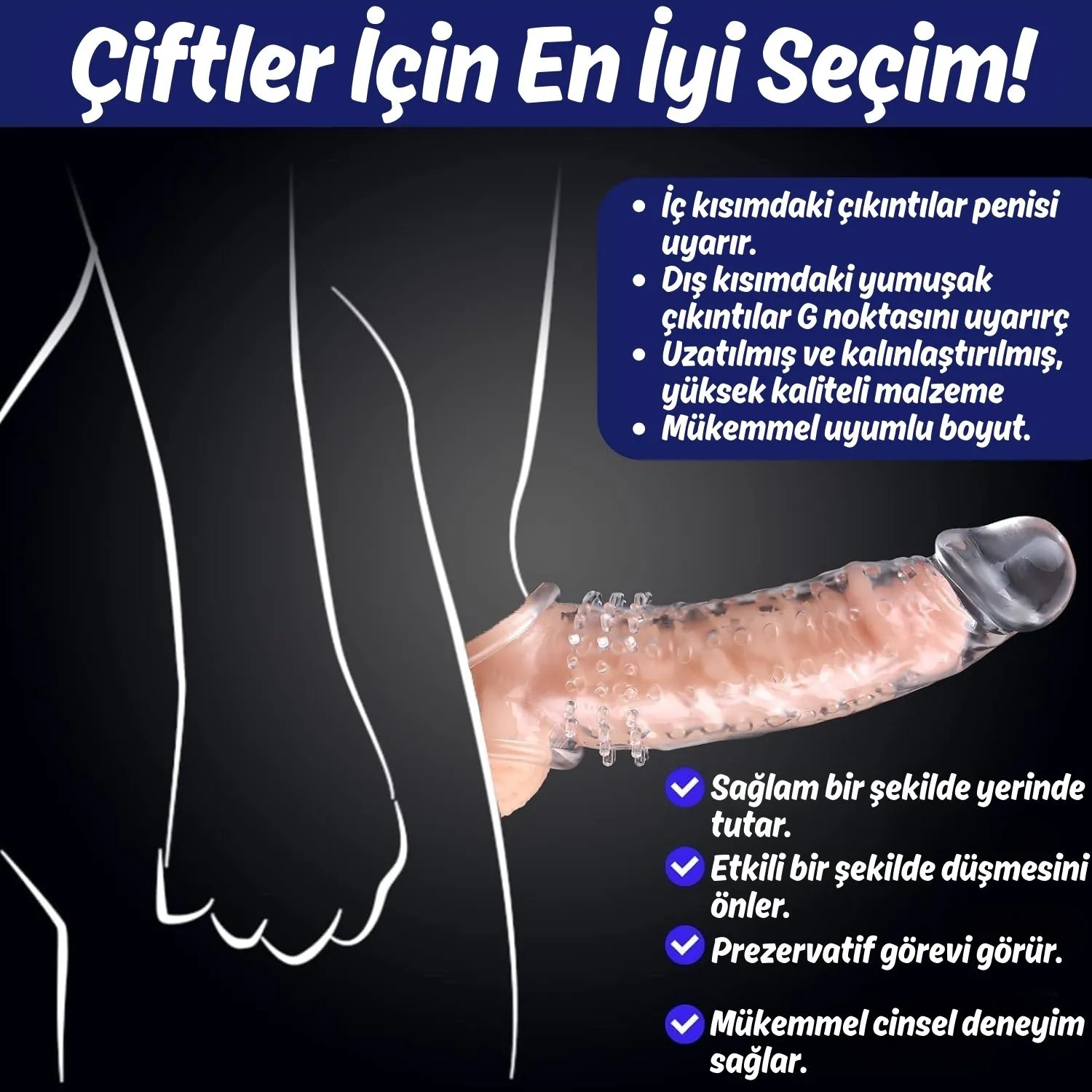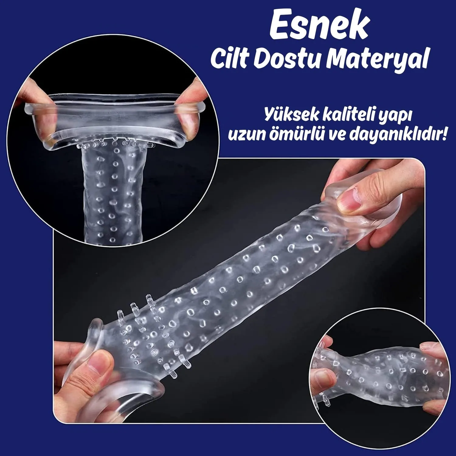 Gerçekçi Doku Penis Büyütücü ve Kalınlaştırıcı 4 CM Uzatmalı Şeffaf Realistik Penis Kılıfı 21 CM