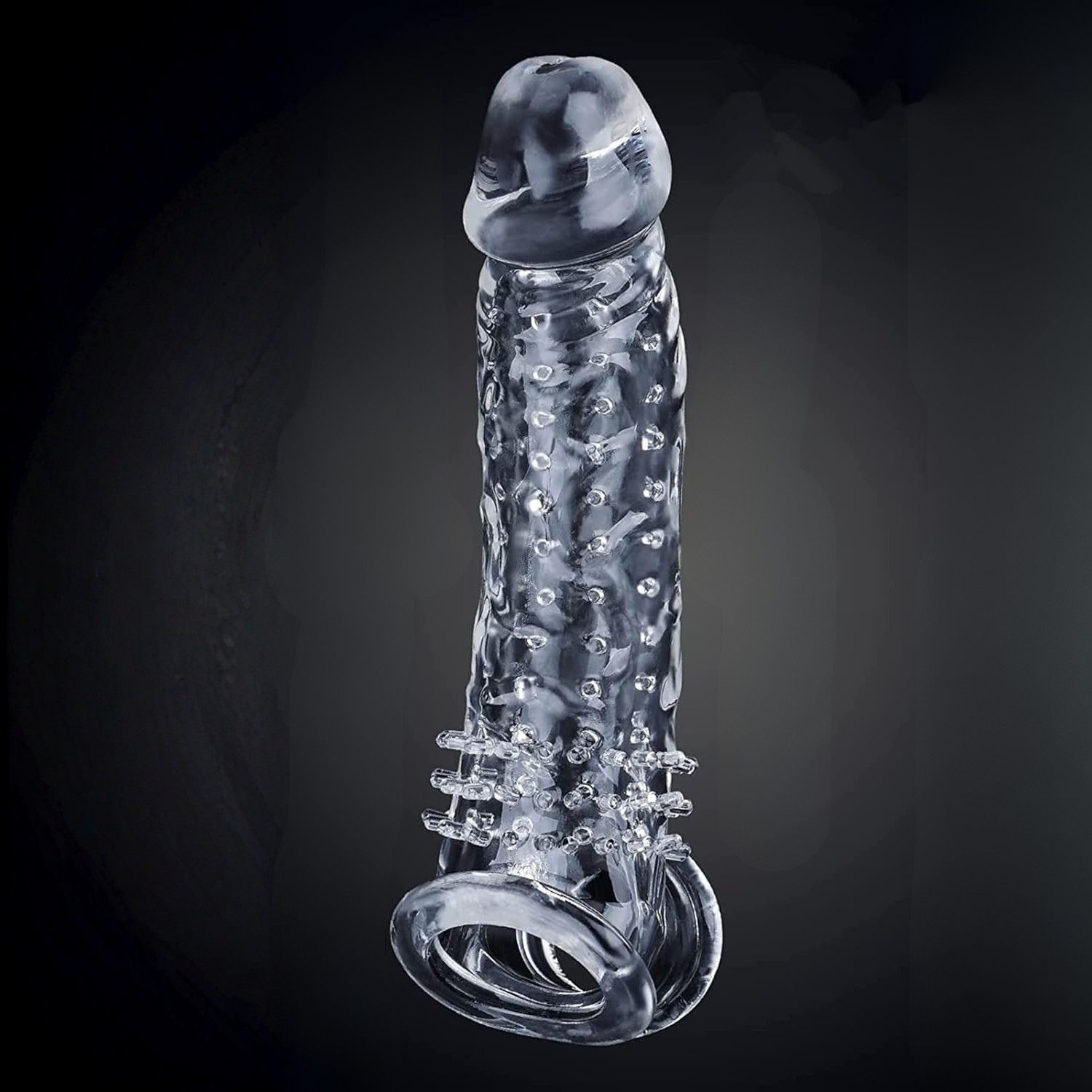 Gerçekçi Dokuda Penis Büyütücü 5 CM Uzatma Dolgulu ve Kalınlaştırıcı Realistik Şeffaf Penis Kılıfı 21 CM