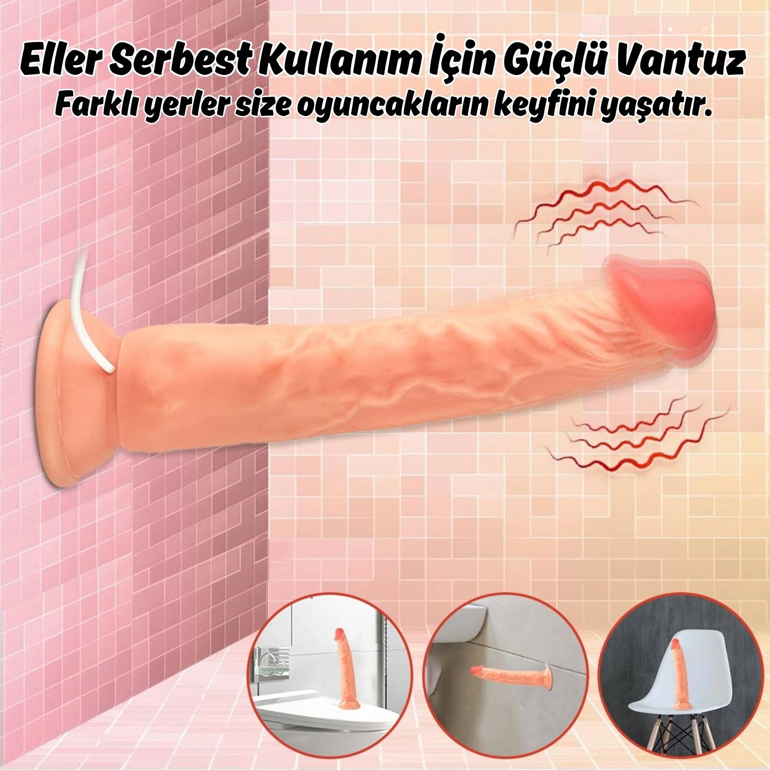 Thomas - Kumandalı Büyük Boy Güçlü Titreşimli Gerçekçi Yapay Penis Realistik Dokuda Dildo 28 CM