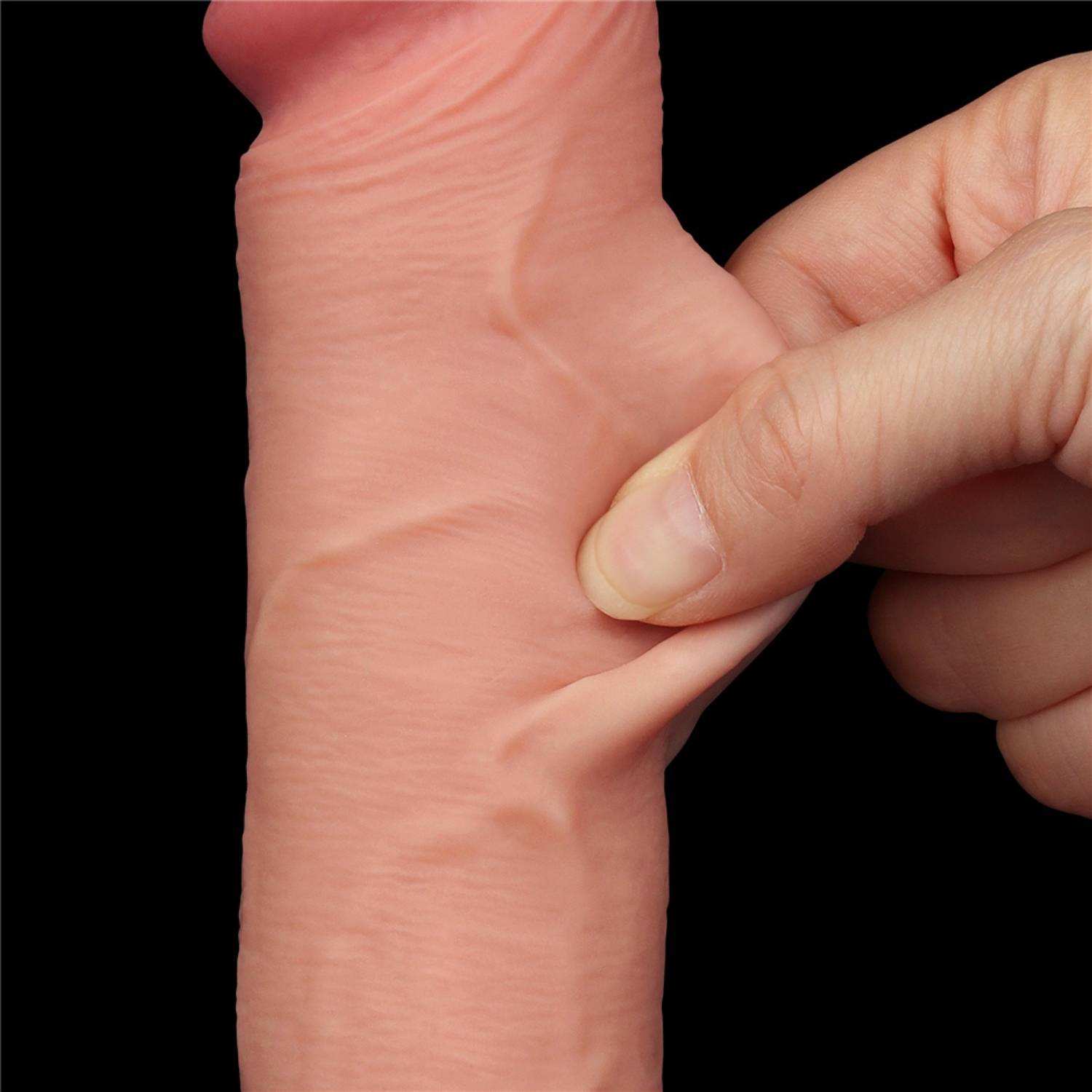 Gerçeğe yakın bir his için gerçekçi çift katmanlı kayar deri malzemeden yapılmış, ereksiyon halindeki penis hissini simüle etmek için özel çift yoğunluk teknolojisine sahip bu yapay penis, yumuşak bir dış cilde ve tatmin edici derecede sağlam bir iç kıkırdağa sahiptir.