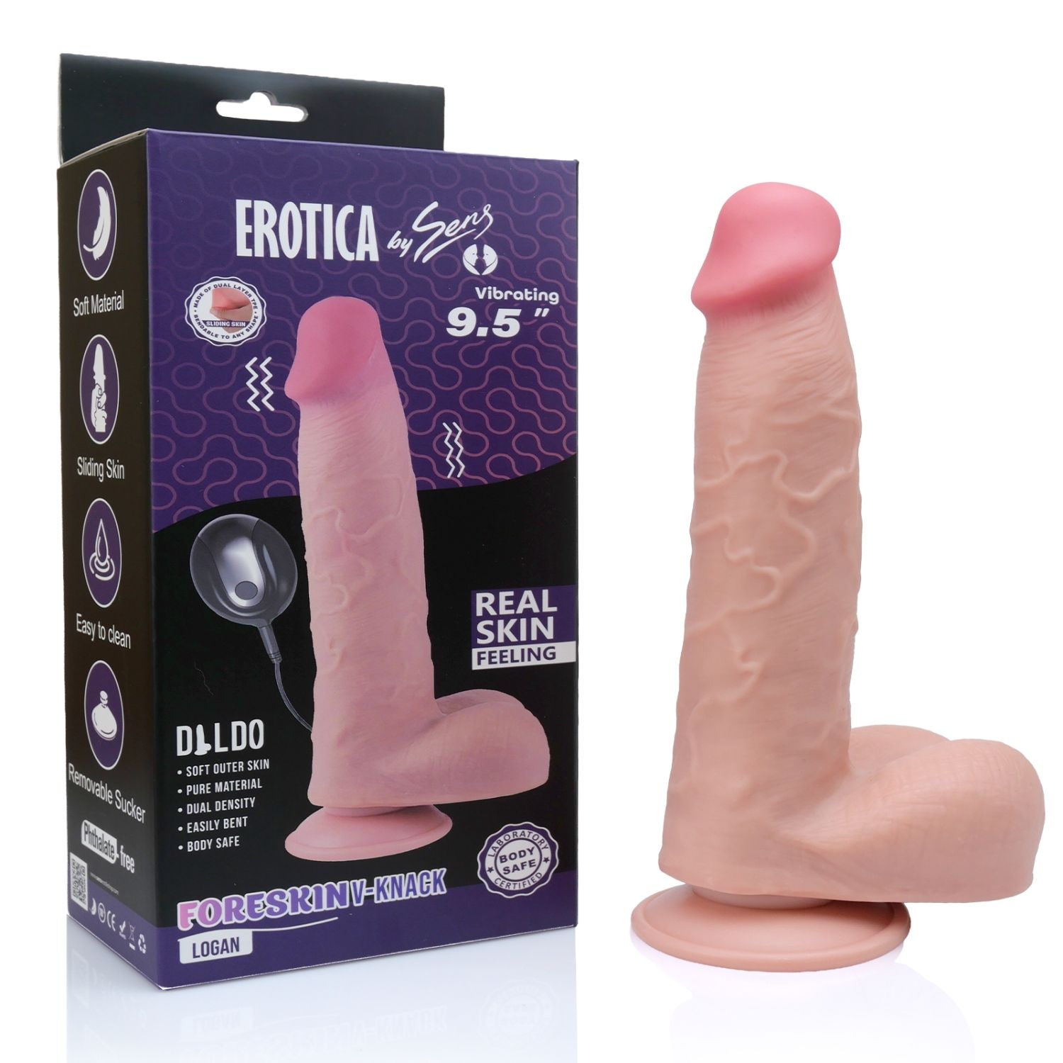Logan - Hareketli Kayar Deri Çift Katmanlı Realistik Vibratör Dildo Ultra Yumuşak Gerçekçi Titreşimli Yapay Penis
