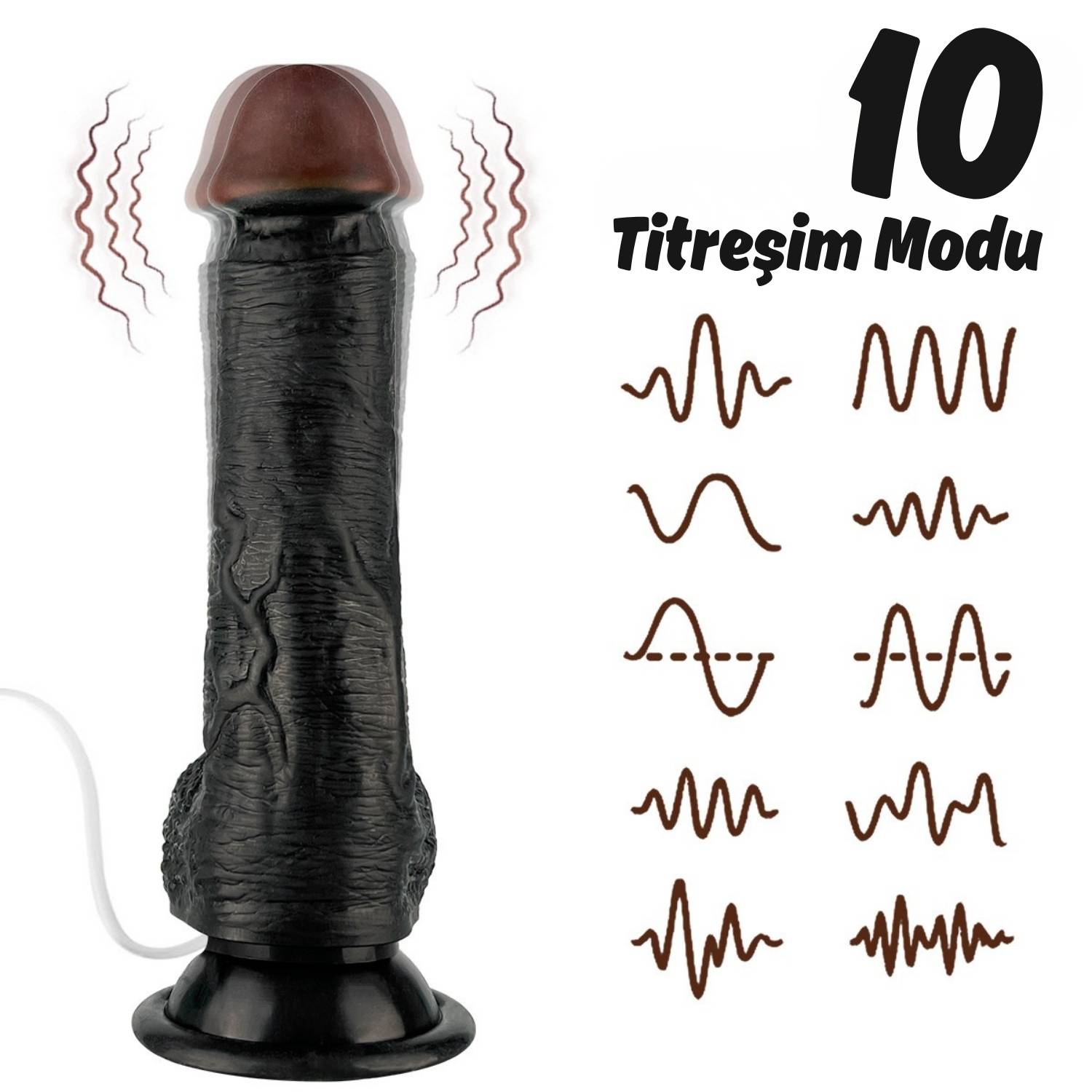 Thomas - Kumandalı Büyük Boy Güçlü Titreşimli Gerçekçi Zenci Yapay Penis Realistik Dokuda Dildo 28 CM