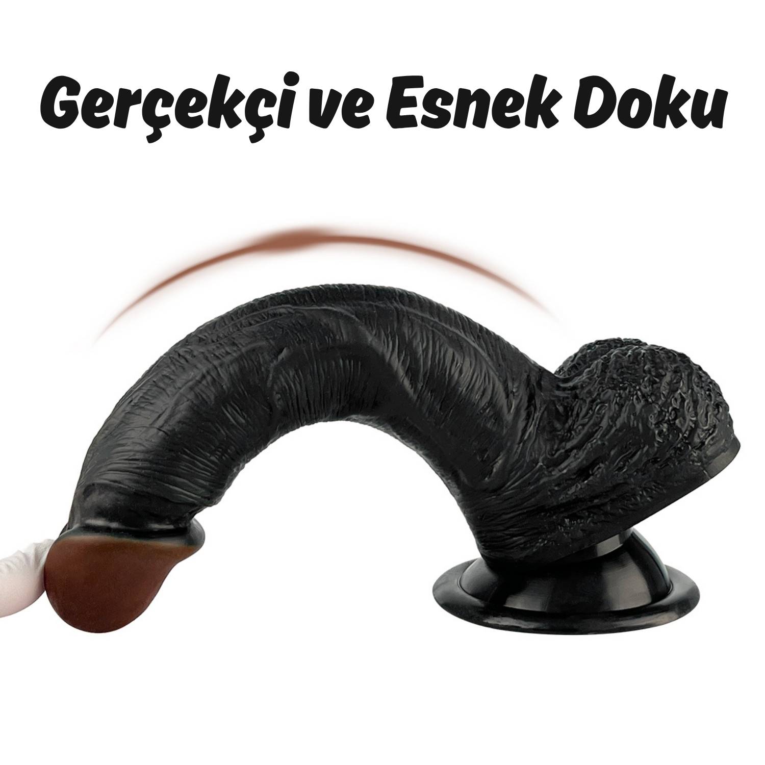Kendrick - Kumandalı Vantuzlu Testissiz Güçlü Titreşimli Gerçekçi Zenci Yapay Penis Realistik Dokuda Dildo 22 CM