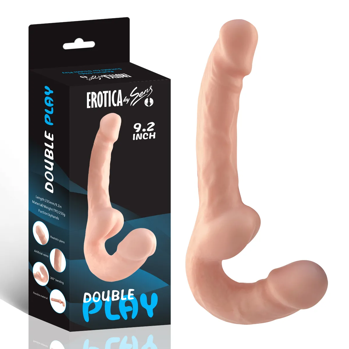 Ultra Soft Realistic Strapless Strap-on Double Dildo Yumuşak Doku Gerçekçi Çift Taraflı Realistik Yapay Penis